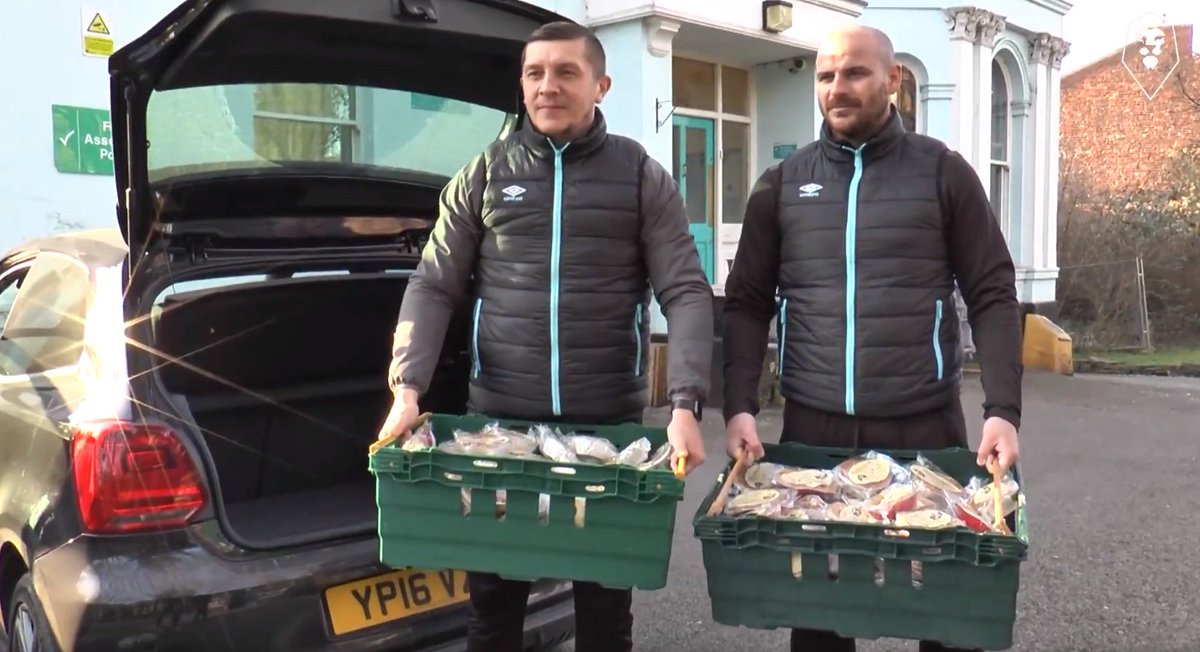 Тренеры Джонсон и Морли доставили груз, который включал 150 пирогов, 4 контейнера картофельного супа с луком и 40 чизкейков в волонтерскую организацию Coffee4Craig, основанную в Манчестере (Manchester).